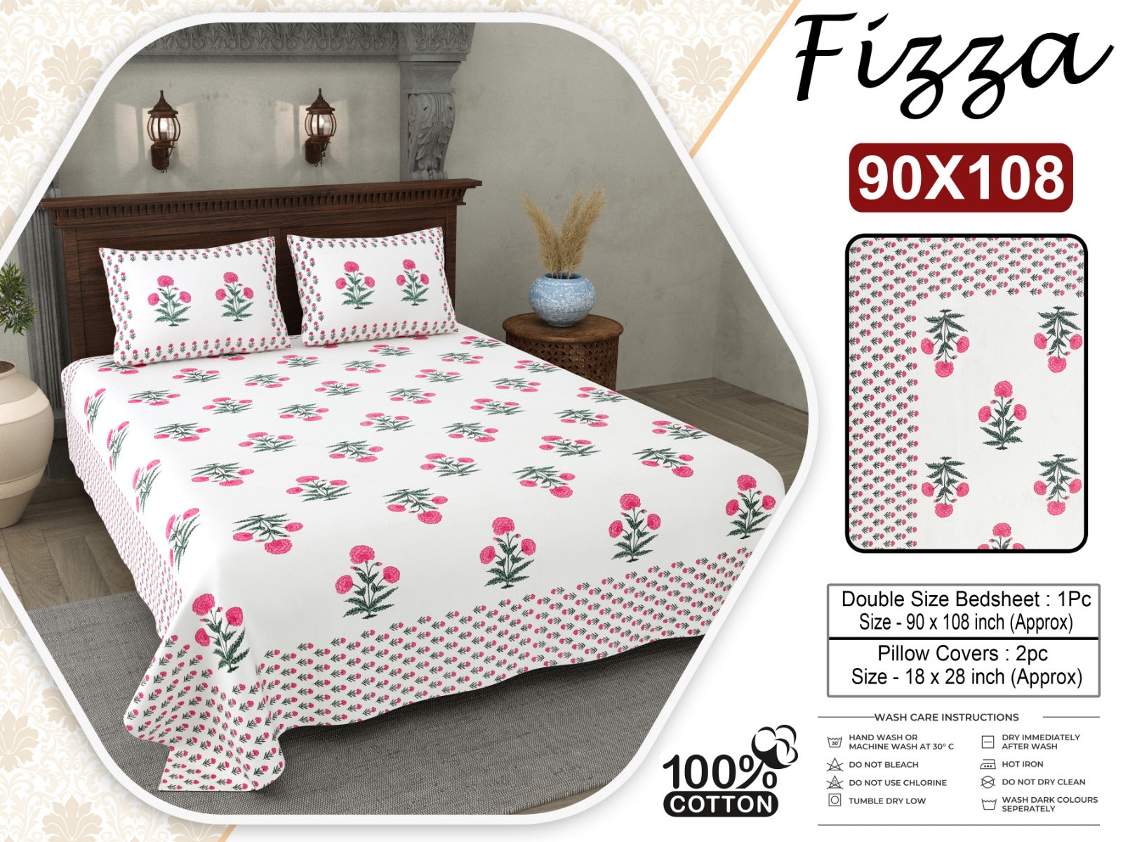 Bedsheet Size: 90 x 108 inches (Approx 7.5 x 9 feet)
