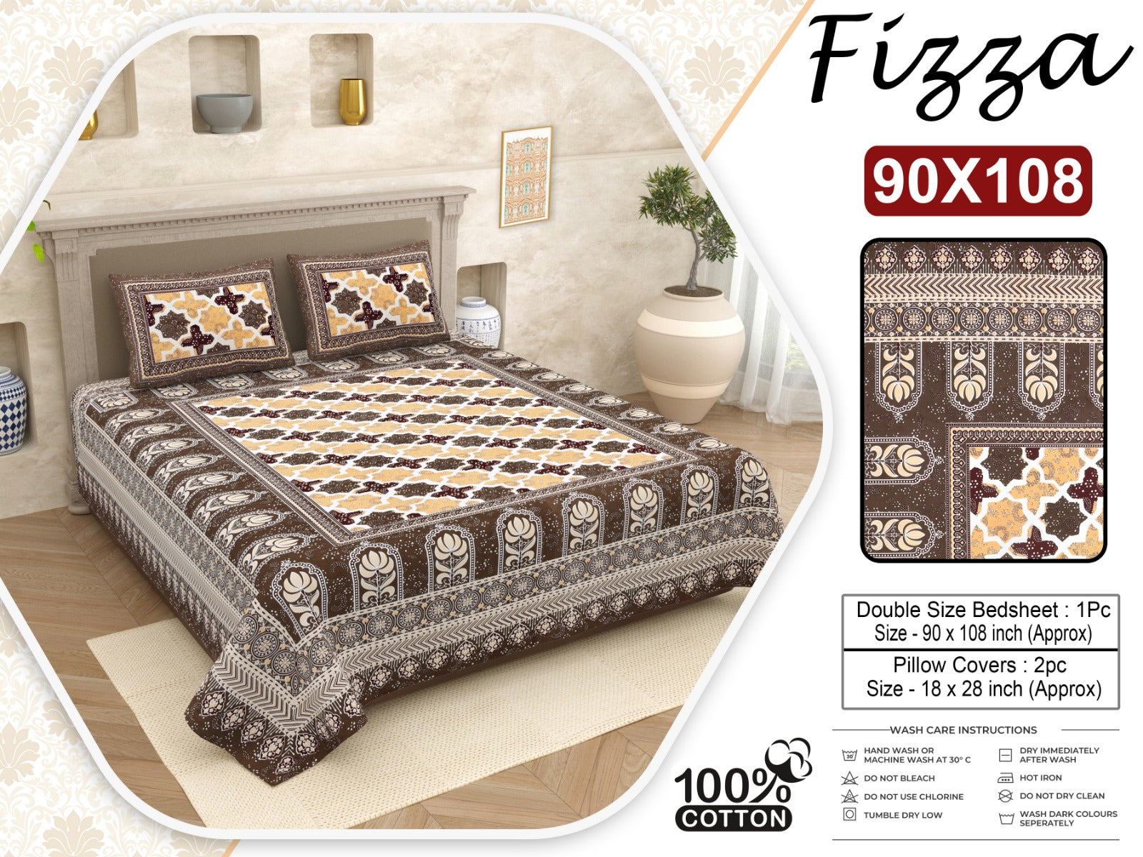 Bedsheet Size: 90 x 108 inches